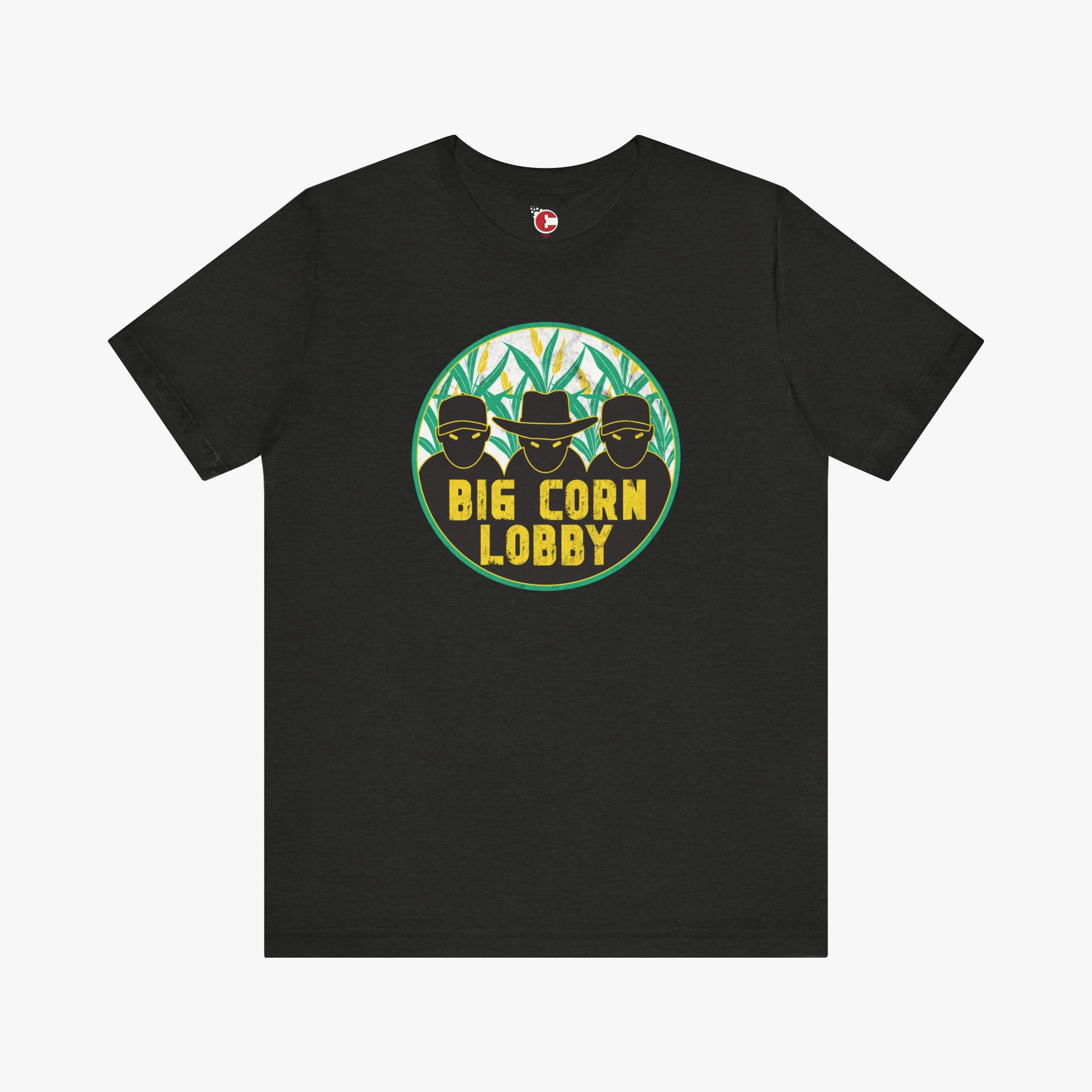 Big Corn Lobby tee is the perfect way to show your allegiance or opposition to the shadowy organization that secretly controls global maize production.